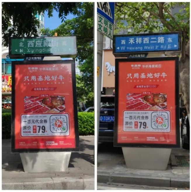 ?;嘏c天藝傳媒強(qiáng)強(qiáng)聯(lián)手,精準(zhǔn)宣傳將牛基地華僑海景城店附近的城市路名牌戶外媒體進(jìn)行定點(diǎn)宣傳。