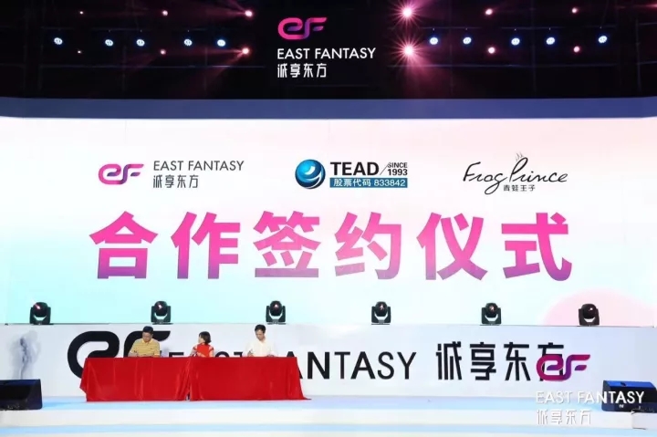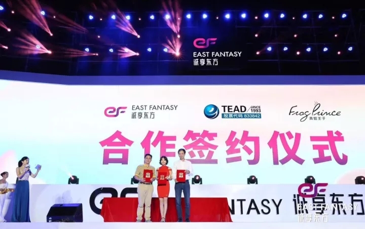 2017年10月21日,在誠(chéng)享東方掛牌慶典晚會(huì)上,天藝傳媒攜手知名美妝移動(dòng)電商——誠(chéng)享東方,及國(guó)內(nèi)領(lǐng)先日化企業(yè)——青蛙王子在廈門音樂島正式舉行簽約儀式。三方將在未來共同推出以“阿巴兔”為品牌形象的兒童護(hù)理系列產(chǎn)品。